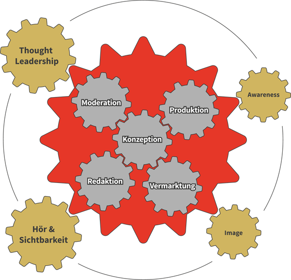 Aus unseren Leistungen wählen wir, abgestimmt auf Ihre Herausforderung, die passenden Maßnahmen und Medien aus. Dafür analysieren wir zunächst den Markt und Ihre Kunden. Im Anschluss schaffen wir gemeinsam eine auditive Erlebniswelt und damit ein Format, das hörbar macht, was Ihre Organisation jenseits von Zahlen, Daten und Fakten auszeichnet. Es geht um nicht weniger als eine Plattform für Ihre Unternehmensbotschaften, die dem Zeitgeist entspricht und Ihre Inhalte transportiert.