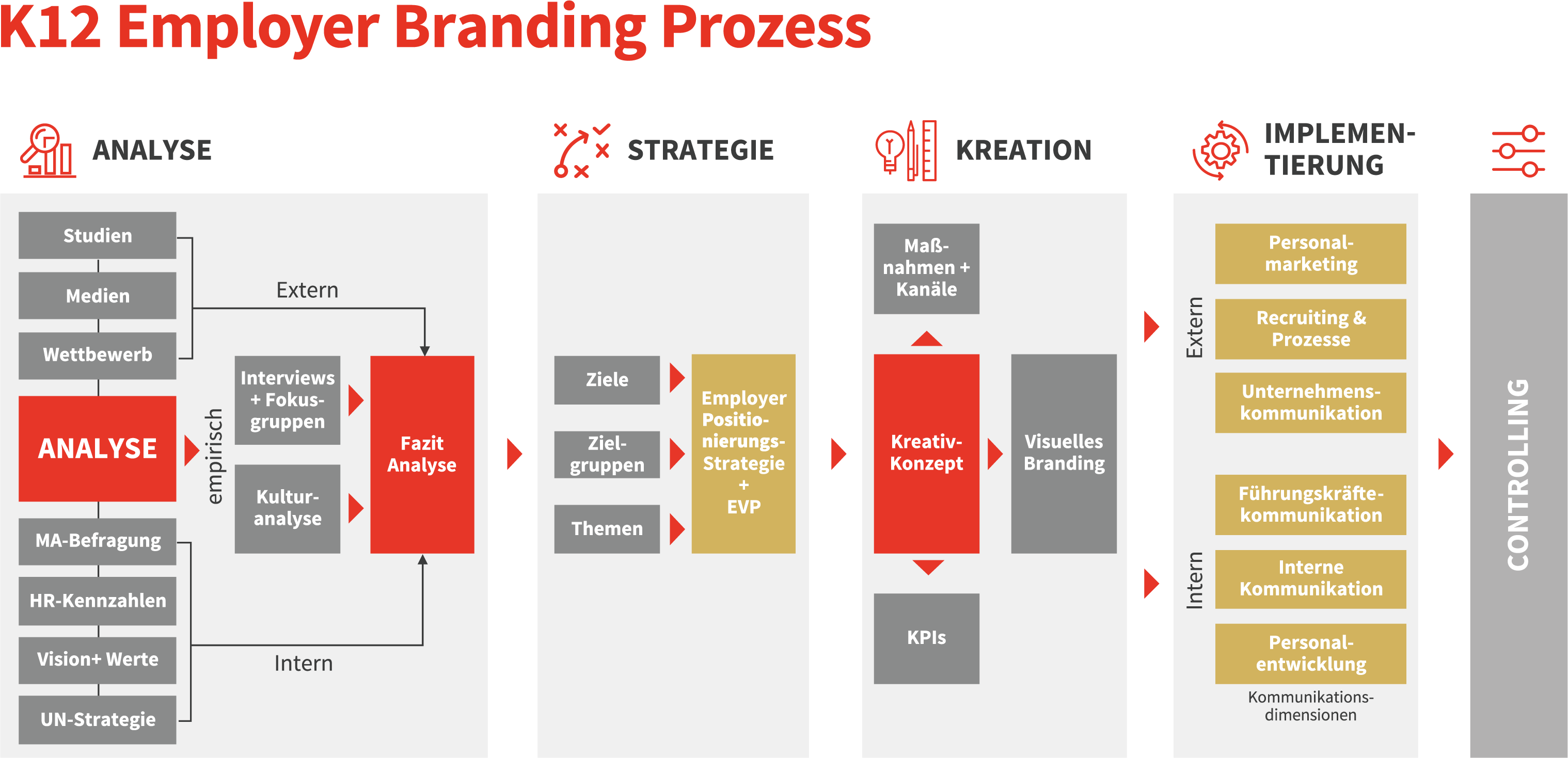 Die Bündelung aller relevanten Kompetenzen und der konstruktive Austausch zwischen den Disziplinen zeichnen das Employer Branding von K12 aus.